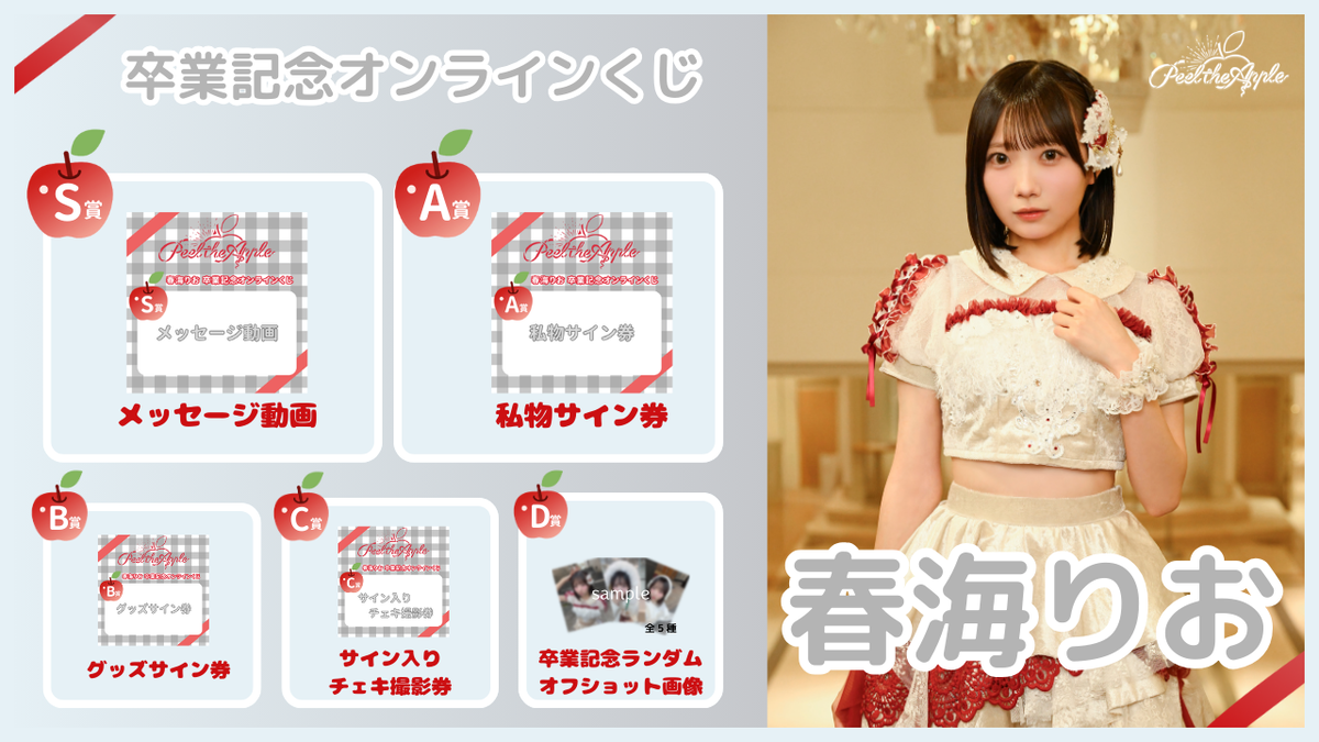 春海りお、広島世那の年内でのグループ卒業に伴い、ファンクラブ会員様を対象に「春海りお 卒業記念オンラインくじ」を実施いたします!